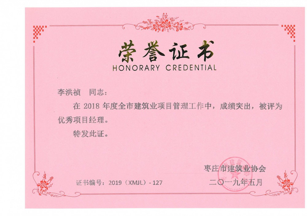 李洪禎-2018年度市級優(yōu)秀施工企業(yè)項(xiàng)目經(jīng)理