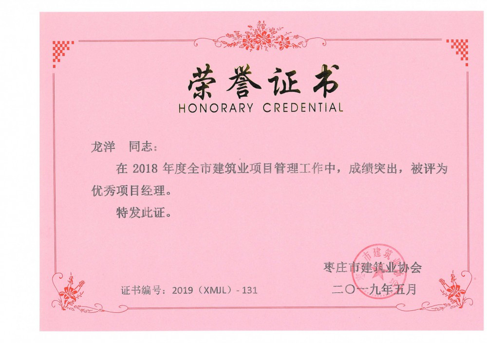 龍洋-2018年度市級(jí)優(yōu)秀施工企業(yè)項(xiàng)目經(jīng)理