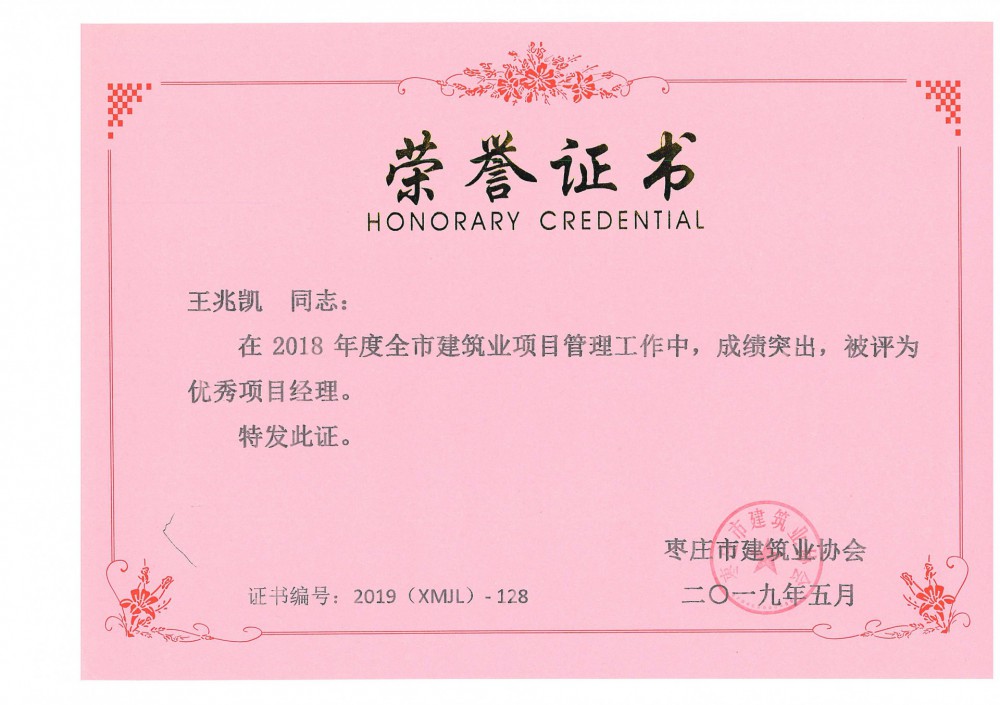 王兆凱-2018年度市級優(yōu)秀施工企業(yè)項目經(jīng)理
