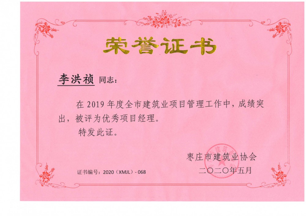李洪禎-2019年度市級優(yōu)秀施工企業(yè)及項目經(jīng)理