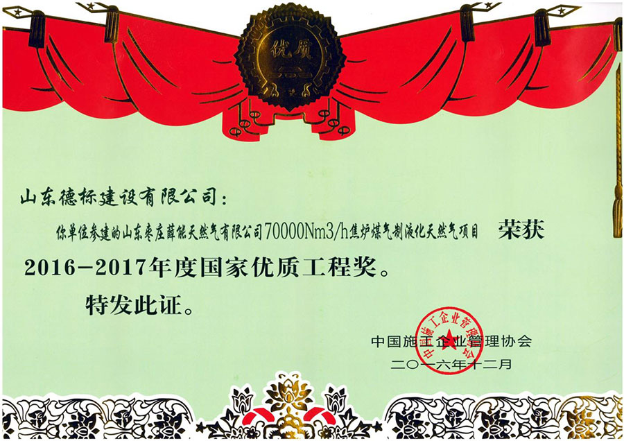 2016-2017年度國(guó)家優(yōu)質(zhì)工程獎(jiǎng)-焦?fàn)t煤氣制液化天然···