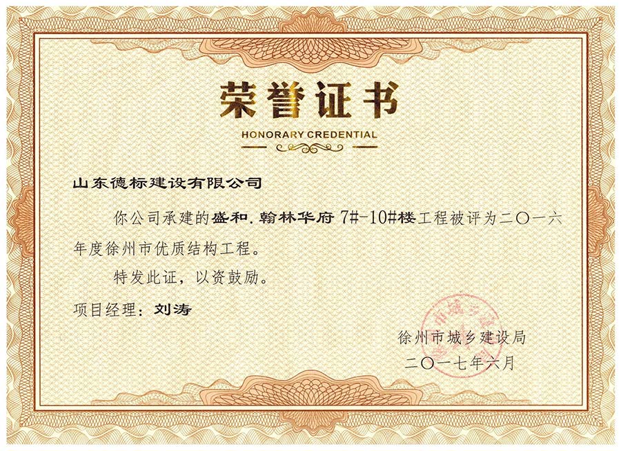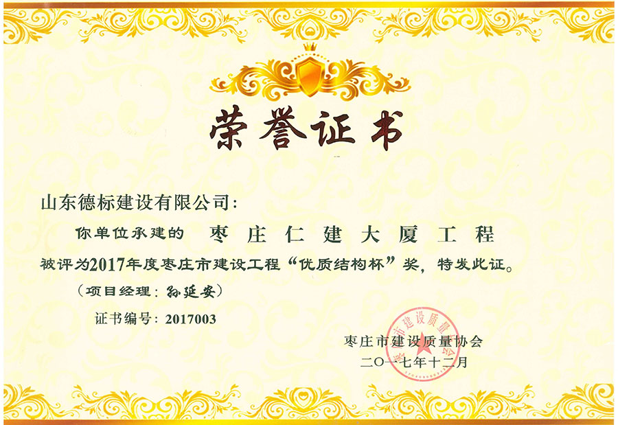 2017年度棗莊市建設(shè)工程優(yōu)質(zhì)結(jié)構(gòu)杯-仁建大廈