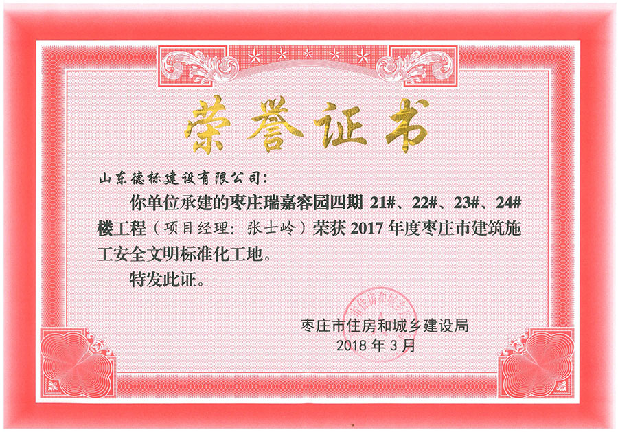 2017年度棗莊市建筑施工安全文明標(biāo)準(zhǔn)化工地-瑞嘉容園四···