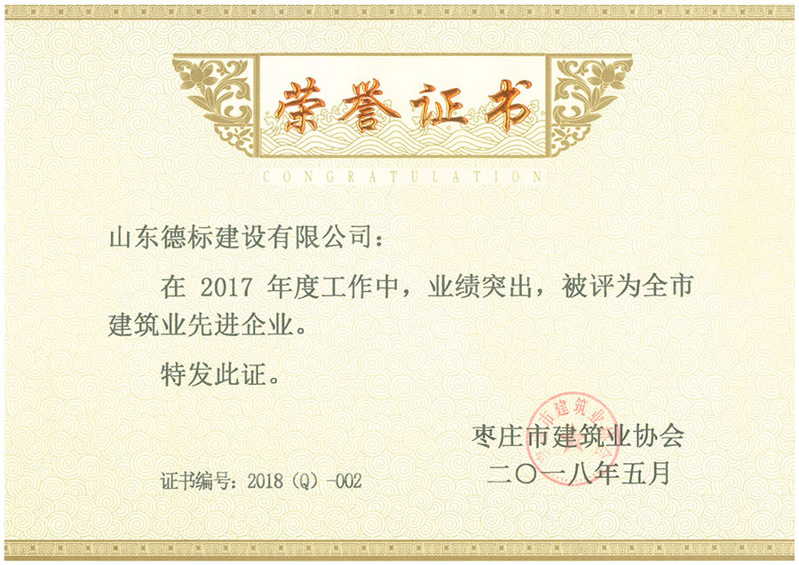2016年度棗莊市建筑業(yè)先進(jìn)企業(yè)